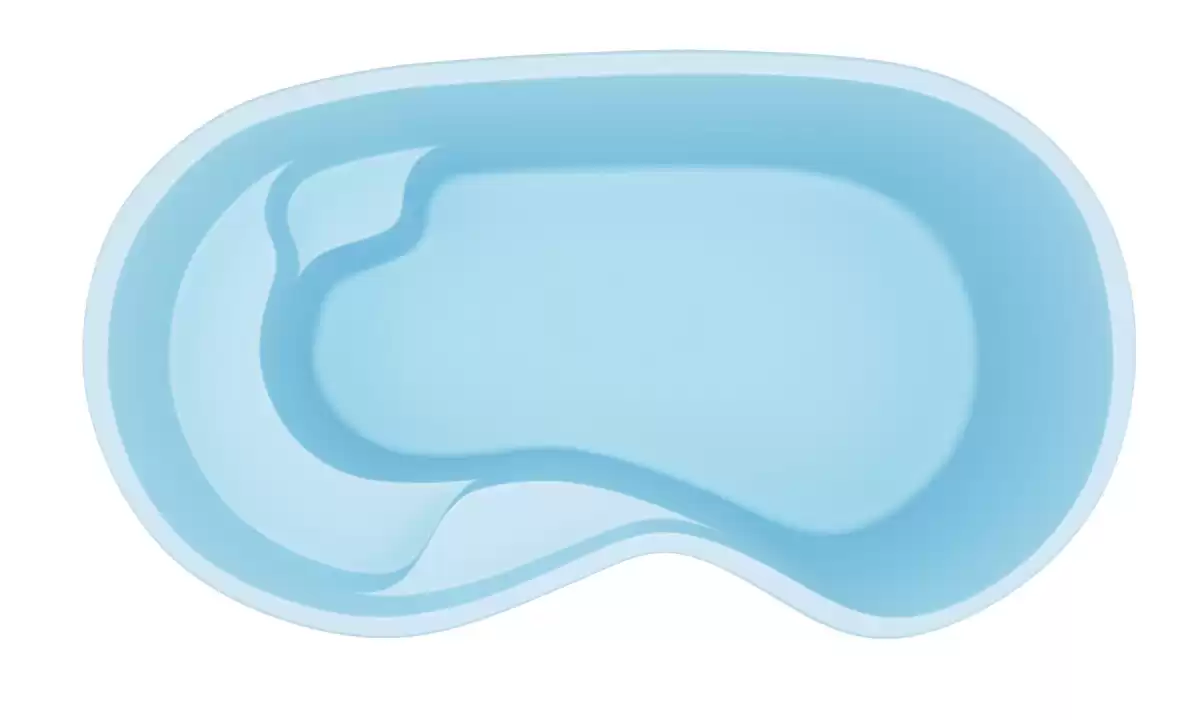 Бассейн ОПТИМА отличается небольшими размерами и похож на изогнутый овал. Второе, что привлекает внимание после необычной формы, — это полка-сиденье. Она имеет три уровня и сочетает роль лестницы и зоны отдыха.