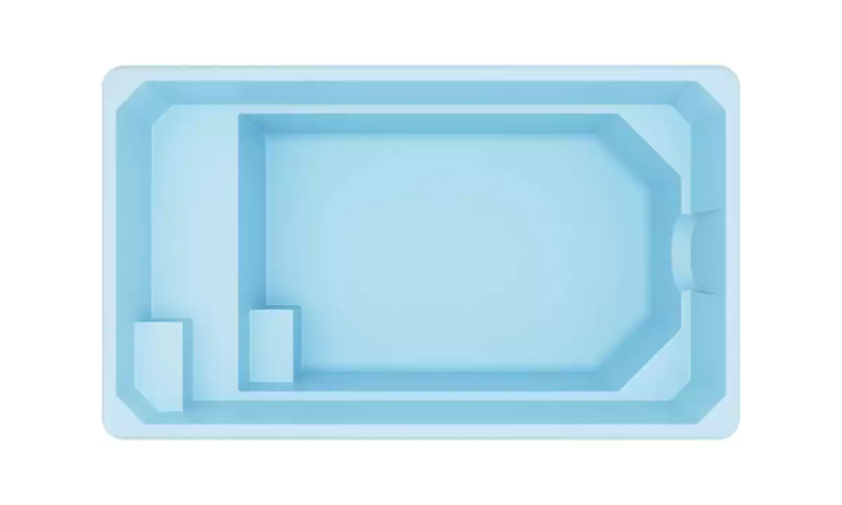 Спуск продуман максимально удобно: одна широкая ступень-подиум и две компактные позволяют безопасно заходить в воду взрослым и детям. При этом вся остальная длина чаши остается свободной для плавания.